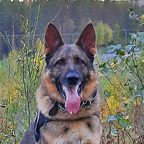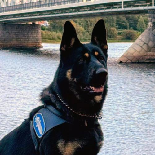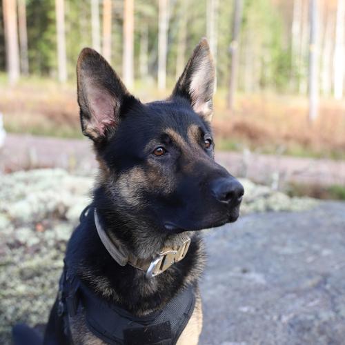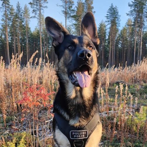Task:patrol dogPlaced at:Eastern Uusimaa Police DepartmentBreed:German Shepherd DogSex:maleDate of birth: September 23, 2020