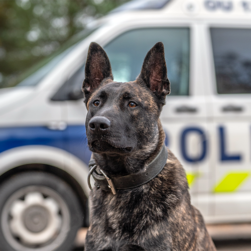 Työtehtävä:partiokoiraSijoituspaikka:Itä-Suomen poliisilaitosRotu:belgianpaimenkoira, malinoisSukupuoli:urosSyntymäaika: 5.3.2022