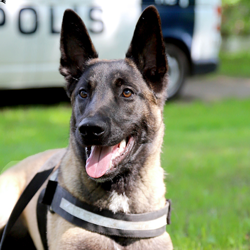 Työtehtävä:partiokoiraSijoituspaikka:Kaakkois-Suomen poliisilaitosRotu:belgianpaimenkoira, malinoisSukupuoli:urosSyntymäaika: 29.5.2017